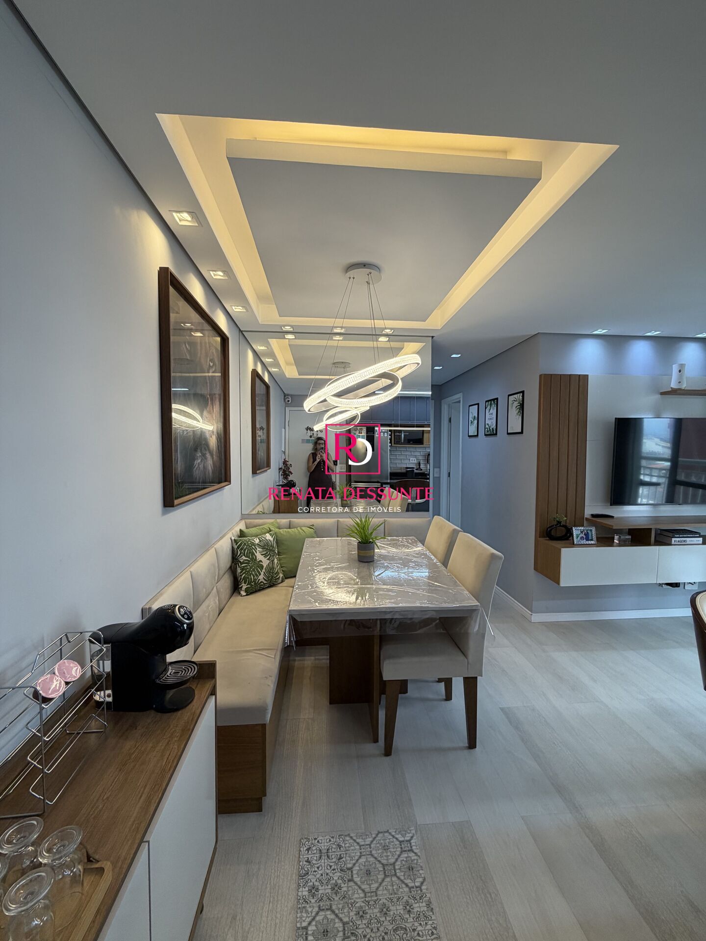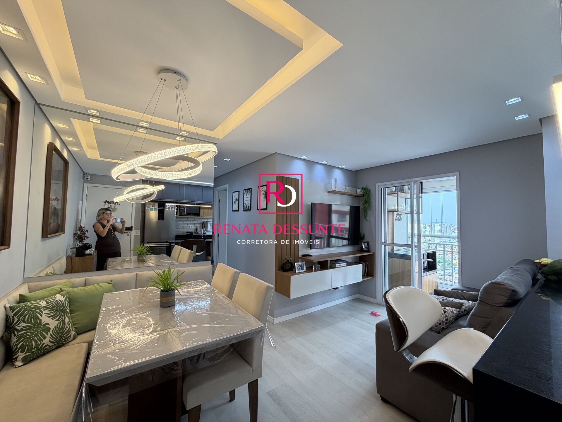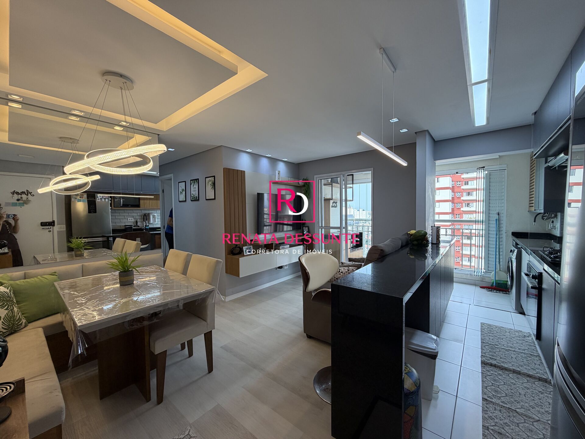 São 2 dormitórios com armários planejados, Sala para dois ambientes com canto alemão, sacada com churrasqueira ecológica e envidraçada, Cozinha estilo americana com armários planejados, Área de serviços com armários, Wc e 1 Vaga de garagem coberta.